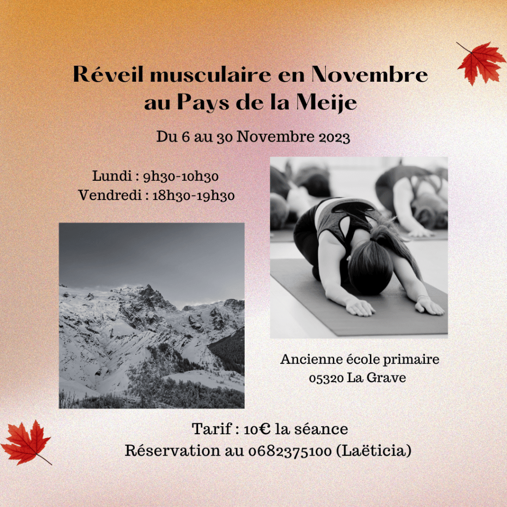 Pour ce mois de Novembre 2023, je vous propose des cours de réveil musculaire à la Grave.